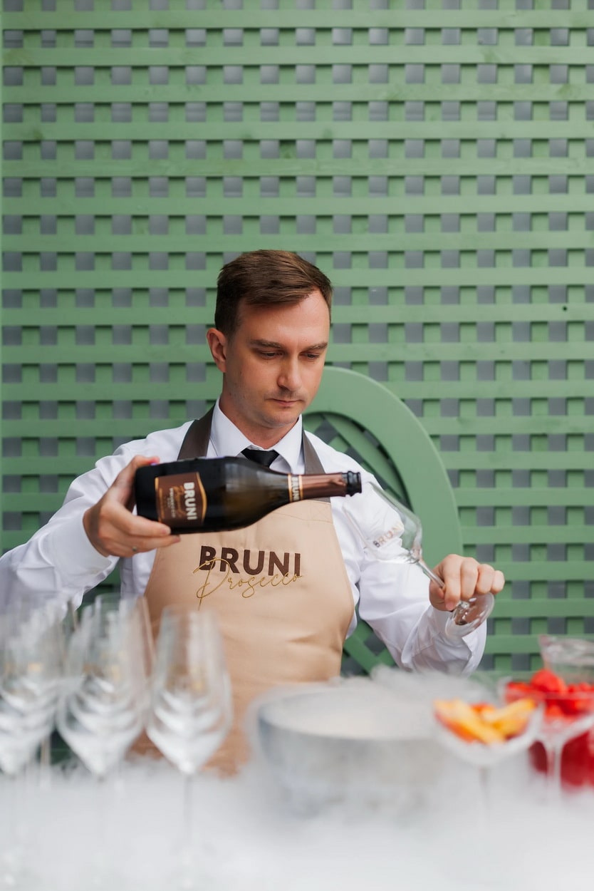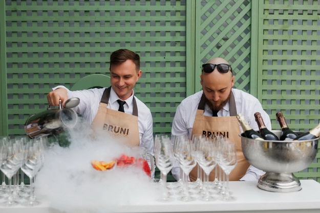Бар Ивент предоставлял барный сервис от лица бренда «BRUNI». Гости могли насладиться просекко и попробовать потрясающие сорбеты «Беллини» и «Россини» на основе этого роскошного напитка.